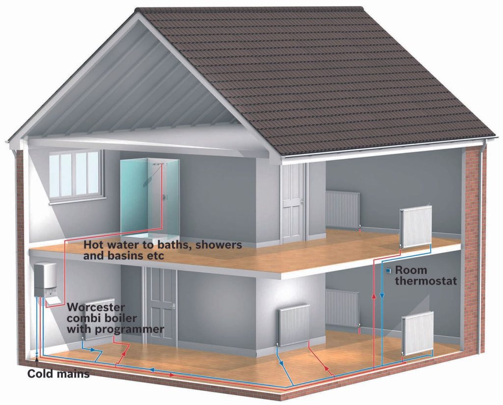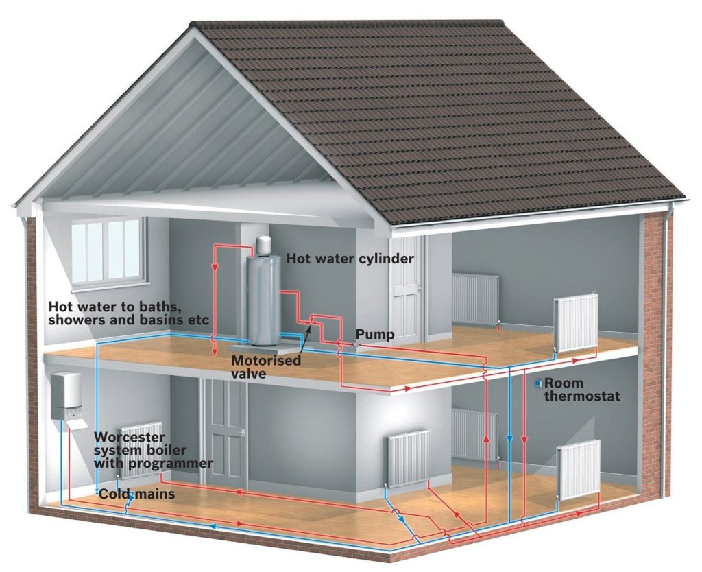 Secondly, the hot water is pumped from the system boiler through the heating system to the radiators and hot water cylinder, resulting in a fast response and more economical running costs. The system boiler removes the need for a feed and expansion cistern.
